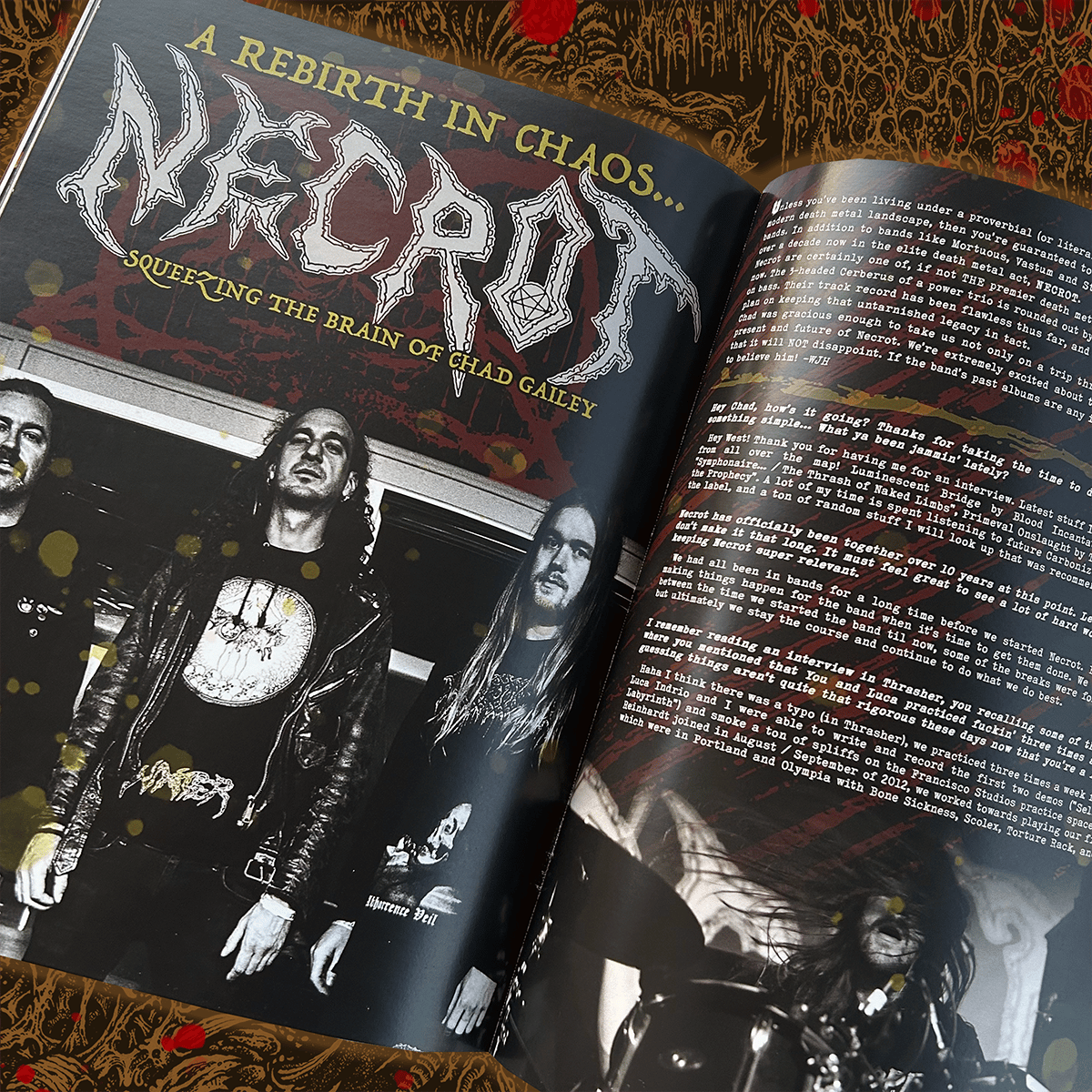 Interviews include an extensive & complete retrospective with IMPETIGO, plus NECROT, BLOOD (GER), KRUELTY, HACKED APART, pro skater BILL DANFORTH, artists NOR PREGO & ALEX SHADRIN.