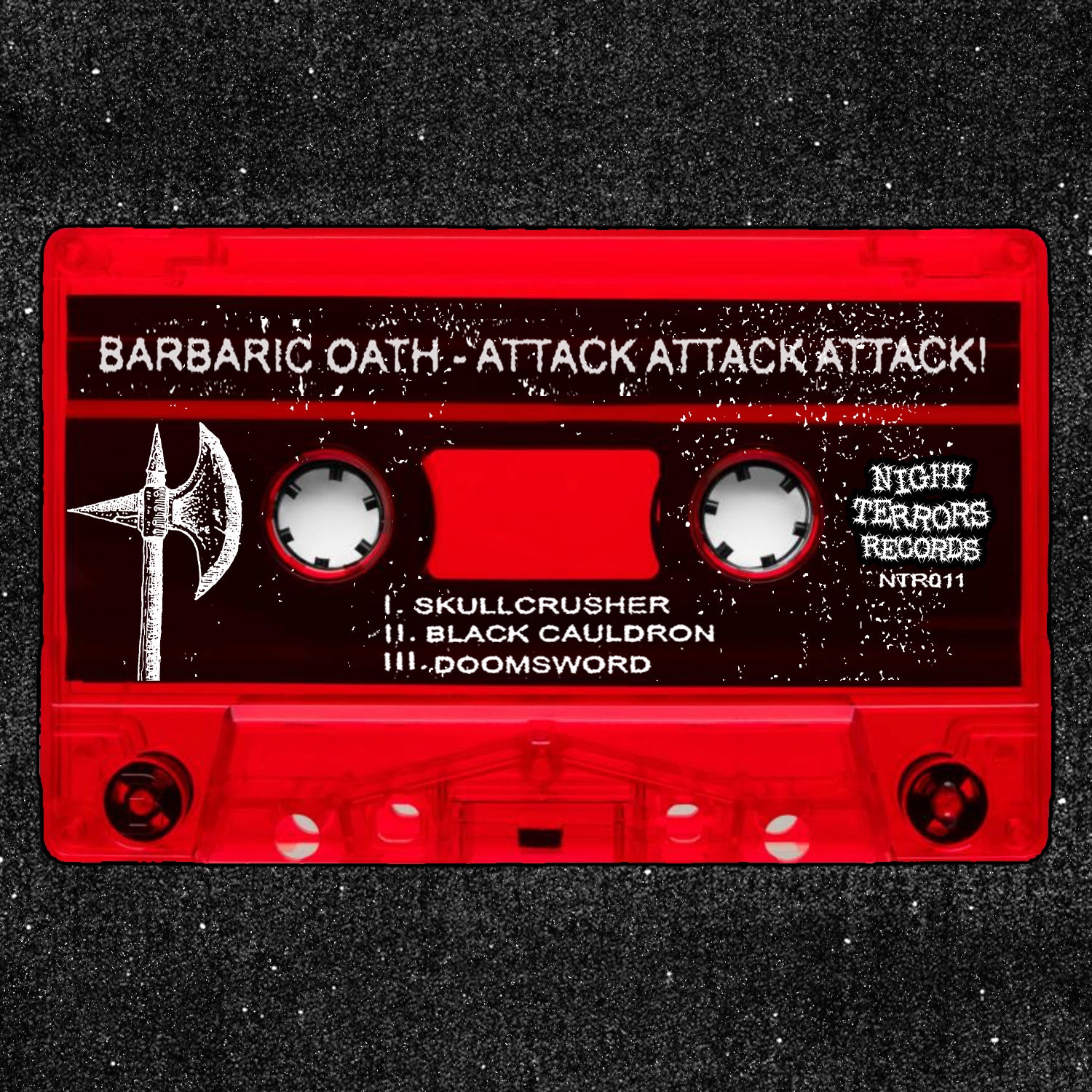 [NTR011] Night Terrors Records is disgusted to present BARBARIC OATH's debut demo cassette, "Attack Attack Attack!". Heading from Germany and sharing members with Putridarium and Nekus, these three nerds are blasting a mix of Death and Black, for worshippers of Blasphemy, Beherit and Napalm Death. The first track "Skullcrusher" is now available to stream on our Bandcamp page and Youtube channel.